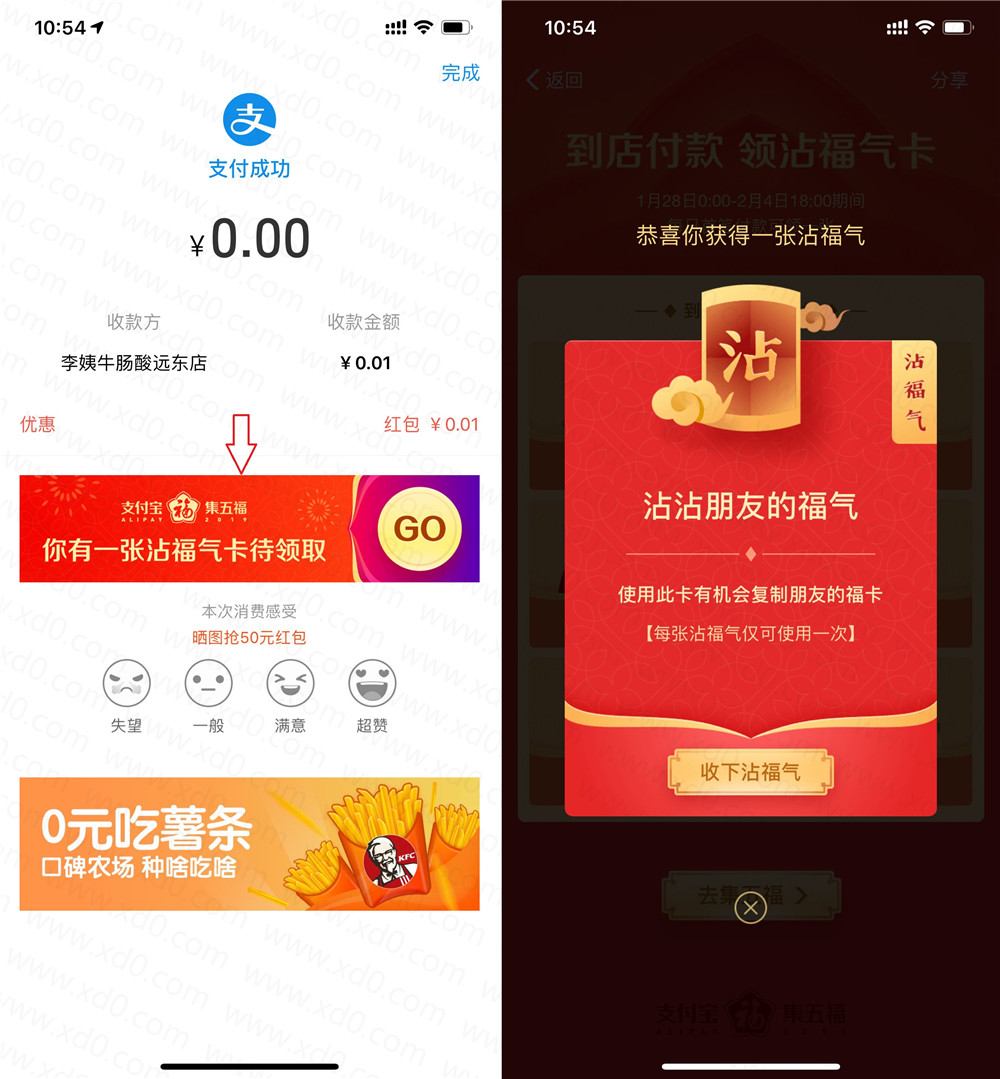 支付成功页面-你有一张沾福气卡领取-进去领取