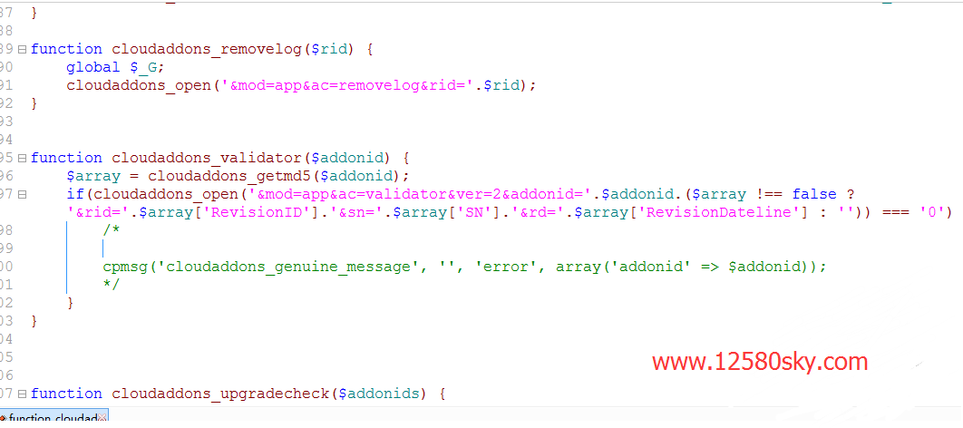 1、打开/source/function/function_cloudaddons.php这个文件,
