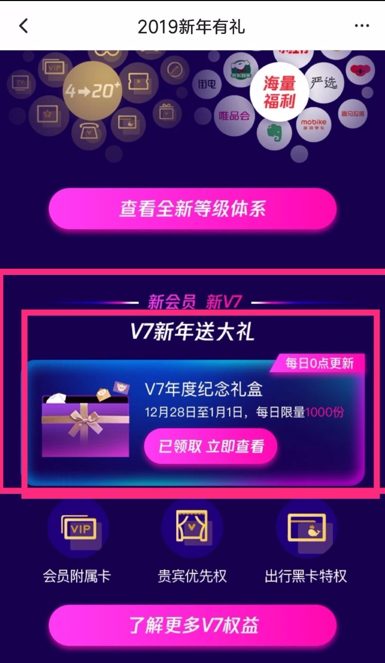 必须V7才能领,等级够的兄弟上车吧,实体物品,还不知道是什么!